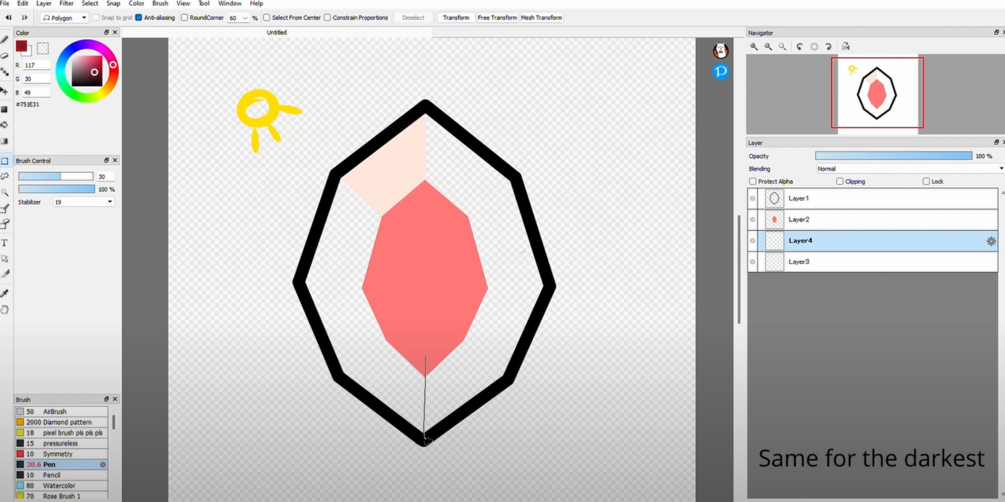 This tutorial can be followed for any gem shape with straight edges and a middle facet.