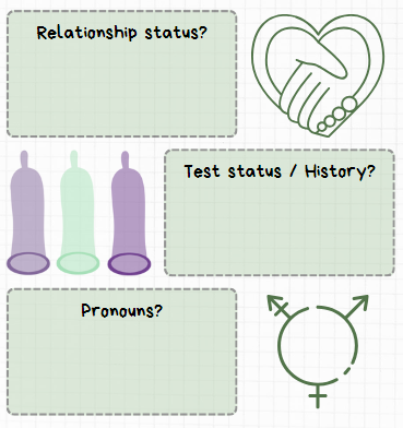 Test status / sexual history, Kinks, nicknames, triggers, preferred tap-out method, preferred positions, etc !